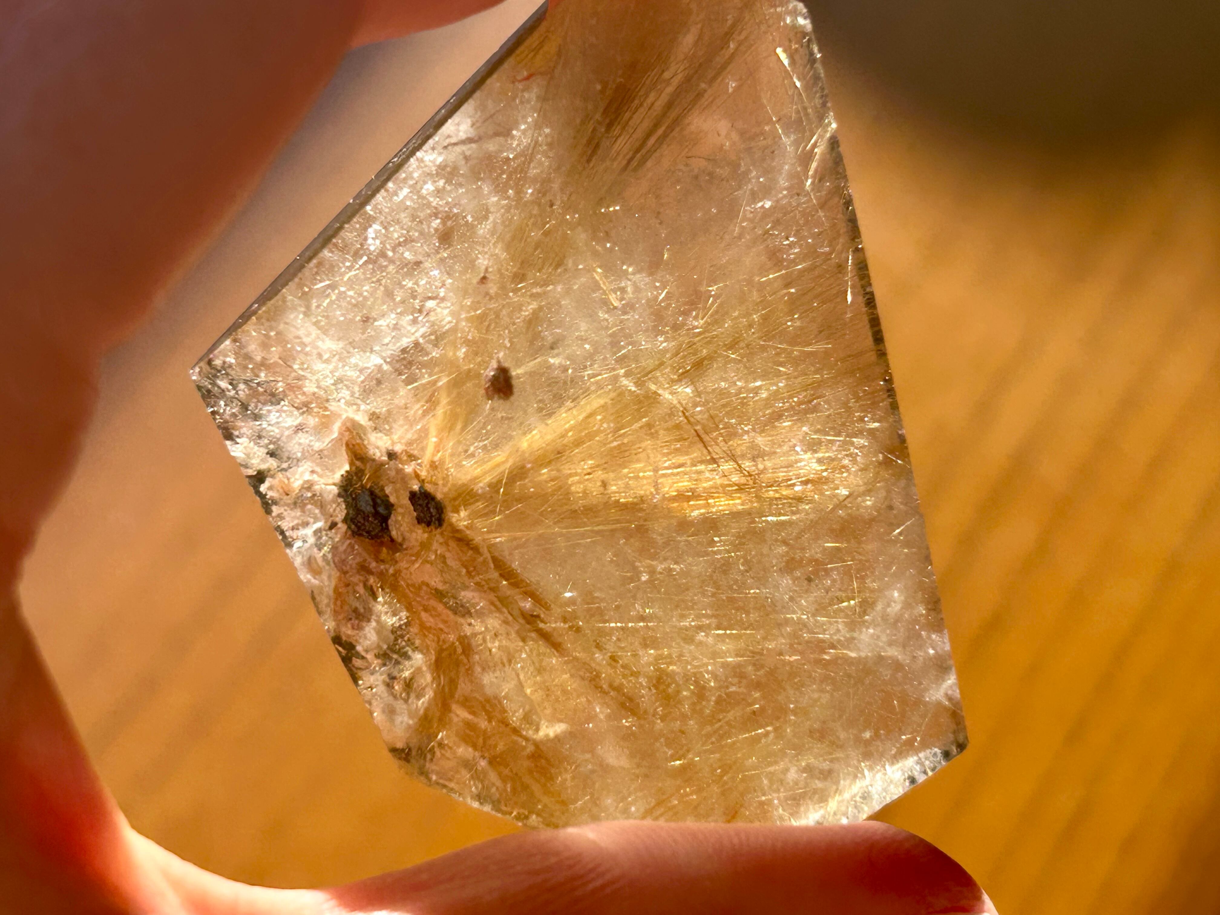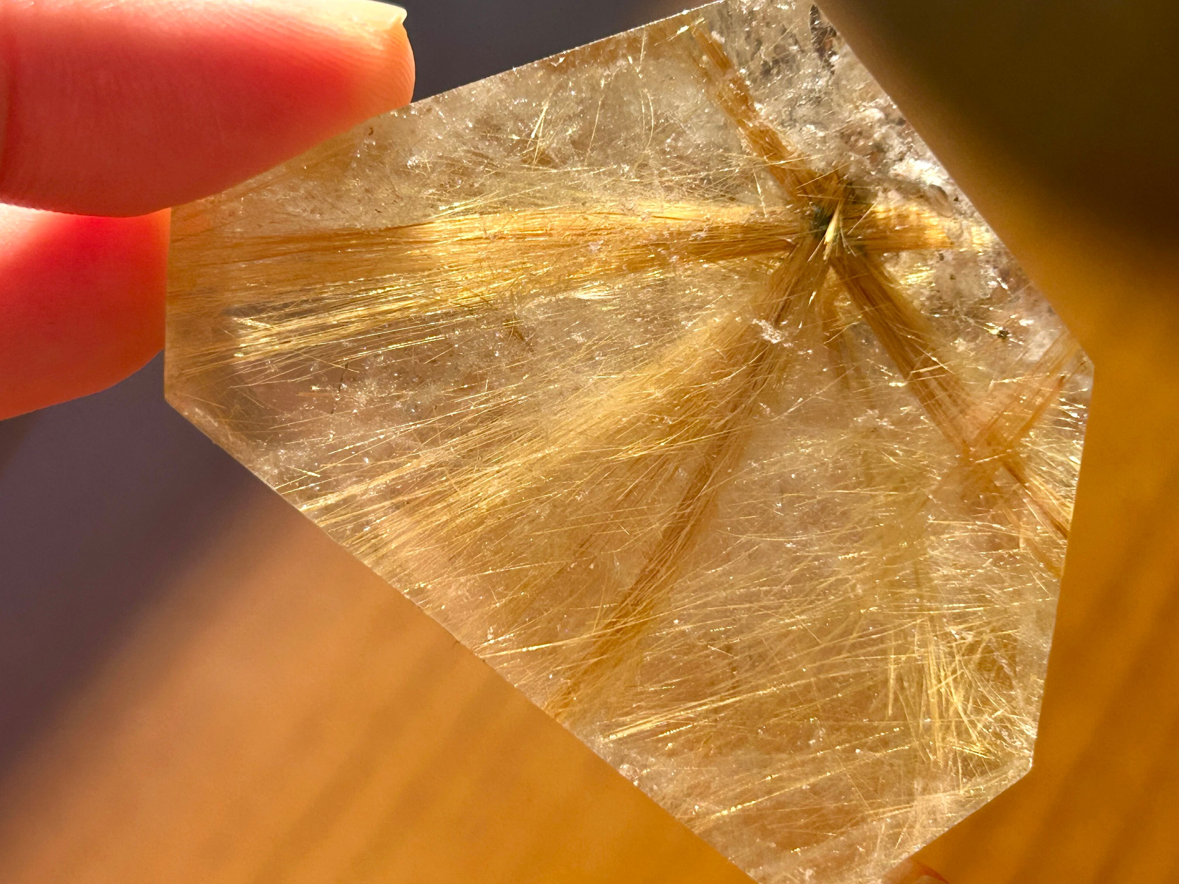 タイチンルチルは、放射線状に太い金色の針が伸びている水晶で、放射線状の中心もはっきりと見る事が出来ます。
