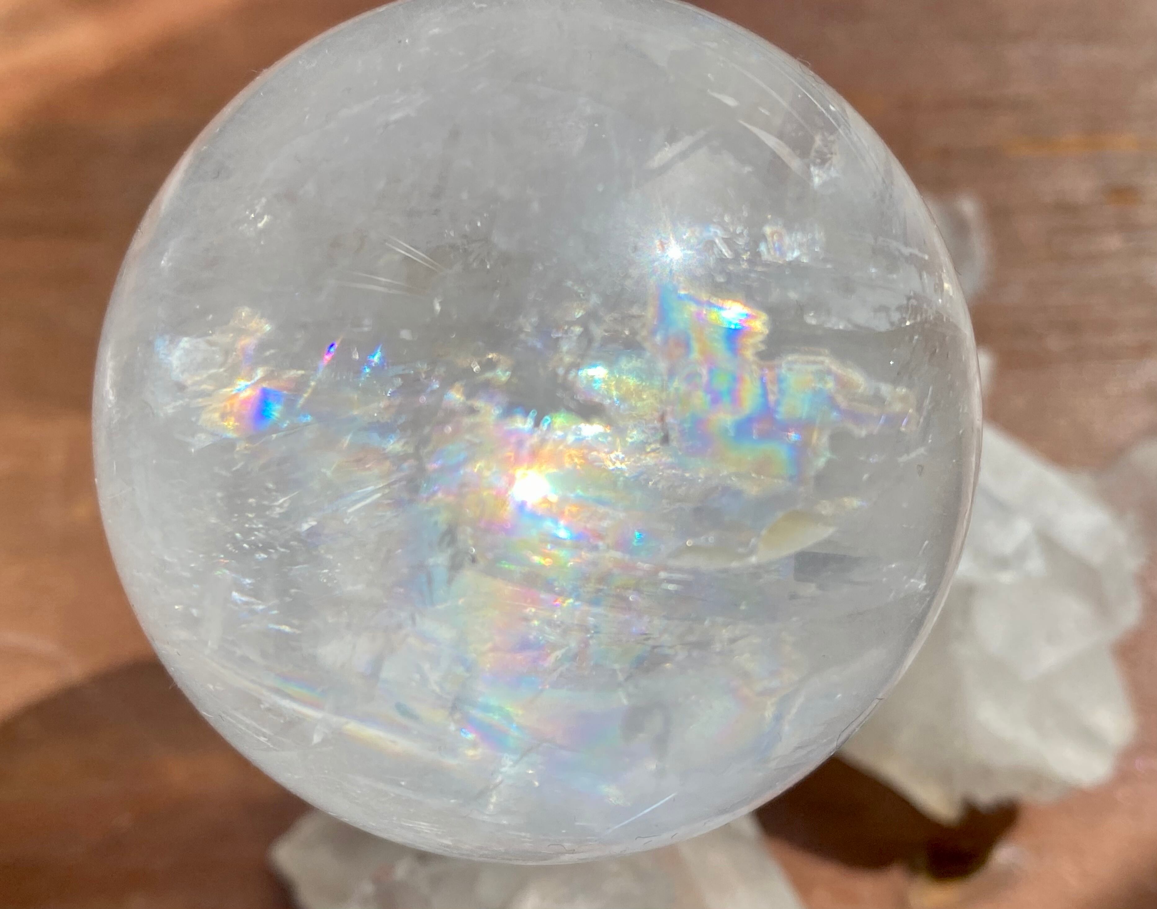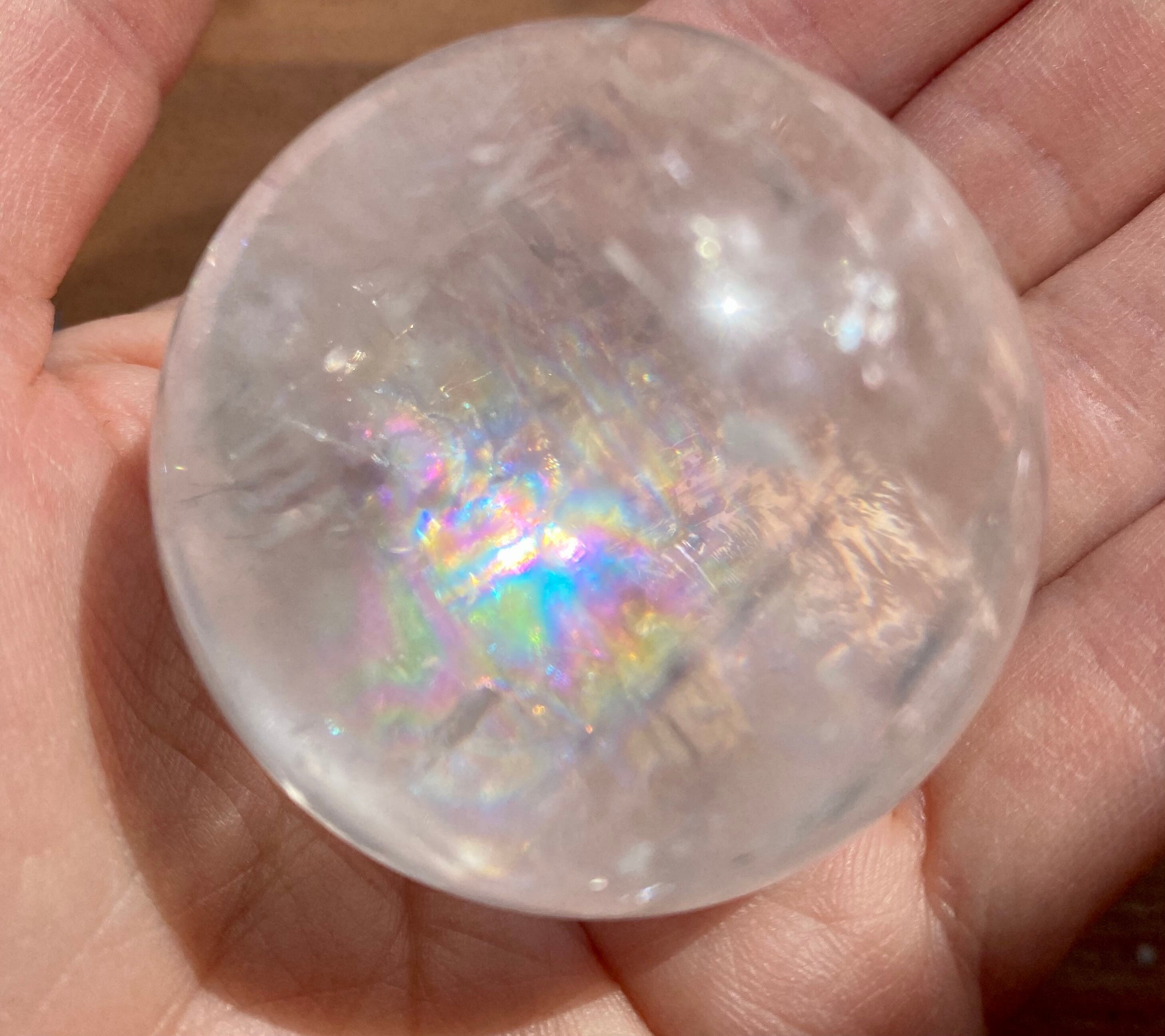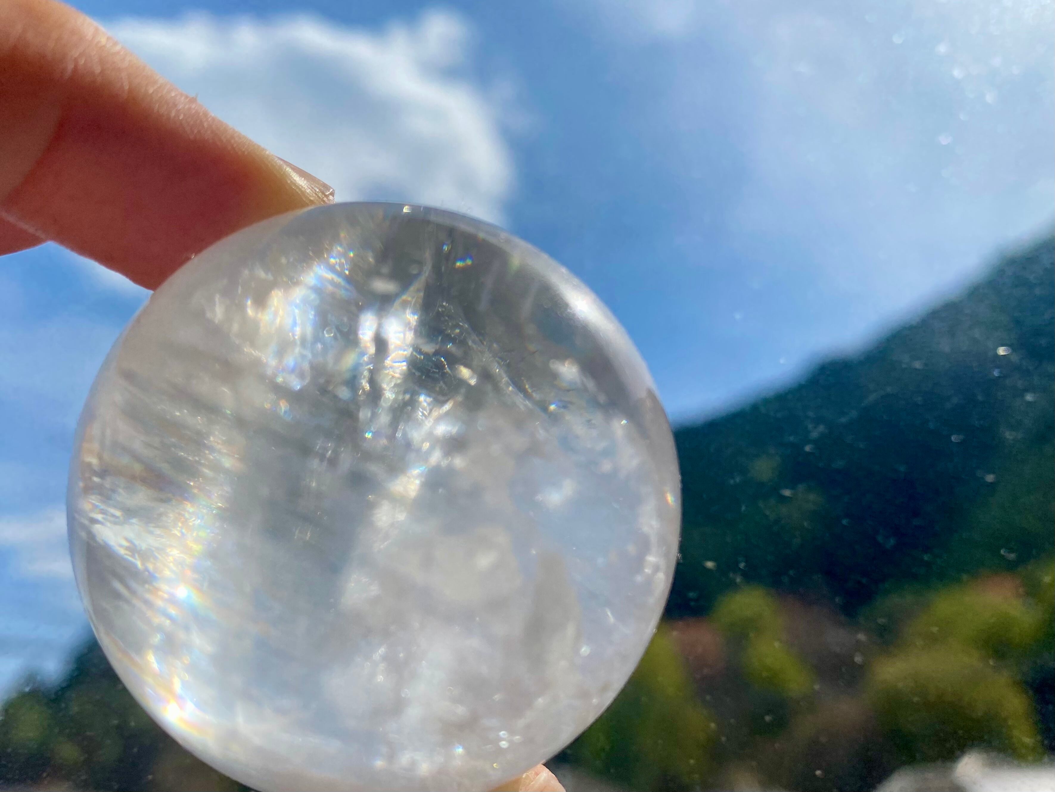 水晶や天然石の特性上、クラックと呼ばれるヒビのような物が入る場合がございますが、品質には問題ございません。虹が出る場合もございますので、お楽しみ下さいませ。